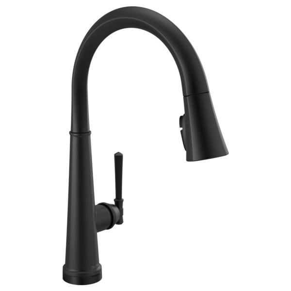 The defined ridges of the Emmeline Kitchen Collections diamond-shaped spout cut a streamlined profile, balanced by captivating details that lend an elemental sense of old-world flair. Delta Touch2O faucets with Touchless Technology help keep germs and mess off your kitchen faucet and provides easy water control 3 ways: simply place your hand near the faucet, tap the faucet surface, or use standard handle activation. ShieldSpray Technology cleans with laser-like precision while containing mess and splatter. A concentrated jet powers away stubborn messes while an innovative shield of water contains splatter and clears off the mess, so you can spend less time soaking, scrubbing and shirt swapping. The TempSense LED light changes color to alert you to the waters temperature and eliminate any possible surprises or discomfort. MagnaTite Docking uses a powerful integrated magnet to pull your faucet spray wand precisely into place and hold it there so it stays docked when not in use. Delta faucets with Diamond Seal Technology perform like new for life with a patented design which reduces leak points, is less hassle to install and lasts twice as long as the industry standard.