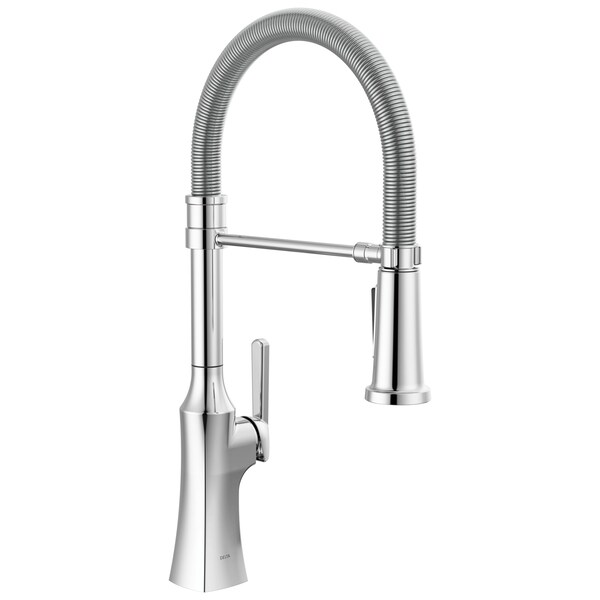 Make an impact in your kitchen with the Ermelo Kitchen Faucet. Take control of your kitchen with the flexible, spring-design undocking spout, which can be easily disconnected then magnetically re-docked for free range of motion. When docked, the faucet still operates as a true pull-down faucet with MagnaTite Docking. MagnaTite Docking uses a powerful integrated magnet to set your pull down sprayer precisely into place and hold it there so it stays docked when not in use. Delta kitchen faucets with Diamond Seal Technology perform like new for life with a patented design which reduces leak points, is less hassle to install and lasts twice as long as the industry standard. Touch-Clean Spray Holes allow you to easily wipe away calcium and lime buildup with the touch of a finger.