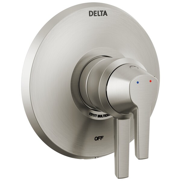 With a design inspired by the shape of sailboats, the Galeon Bath Collection brings a chiseled, contemporary look into the bath. Delta showers with Monitor pressure-balance valves are engineered to make sure you dont experience a sudden and possibly unsafe change in water temperature as a result of running water elsewhere, such as using a dishwasher, flushing a toilet or running a washing machine. With separate handles for volume and temperature control, this Delta tub/shower provides a more refined showering experience. Simply set the water at your preferred temperature and turn the shower on or off with the volume control handle without interrupting your set temperature.