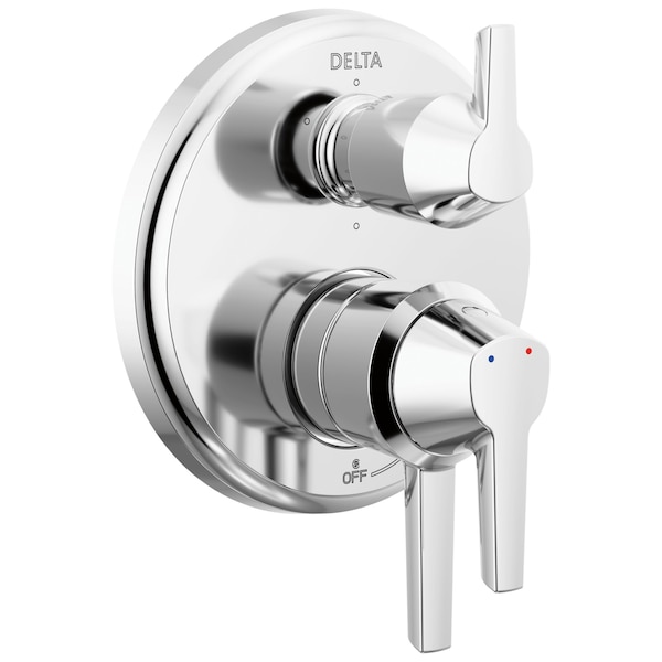 With a design inspired by the shape of sailboats, the Galeon Bath Collection brings a chiseled, contemporary look into the bath. Delta showers with Monitor pressure-balance valves are engineered to make sure you dont experience a sudden and possibly unsafe change in water temperature as a result of running water elsewhere, such as using a dishwasher, flushing a toilet or running a washing machine. By integrating separate controls on one trim with the MultiChoice Integrated Shower Diverter, weve streamlined installation and your shower style. With separate volume and temperature control on this model, simply set the water at your preferred temperature and turn the shower on or off with the volume control handle without interrupting your set temperature.