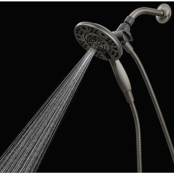 The Delta In2ition Two-in-One Shower features a detachable hand shower which can be used separately from or simultaneously with the shower head. This integrated dual-functionality gives you maximum flexibility without sacrificing warmth as you can choose to have water streaming from the shower head only the hand shower only or both the shower head and hand shower at once. While other products may gather unsightly mineral build-up over time Delta soft rubber Touch-Clean spray holes allow any mineral residue to simply be wiped away for an instantly refreshed look with no need for soaking or the aid of chemical cleaners. The pause setting gives you ample space for shaving lathering and other shower tasks without worrying about overspray or water waste. This spray setting helps you conserve water so you can worry less about depleting your supply of hot water - and you help the environment too. Delta WaterSense labeled faucets showers and toilets use at least 20% less water than the industry standard saving you money without compromising performance.