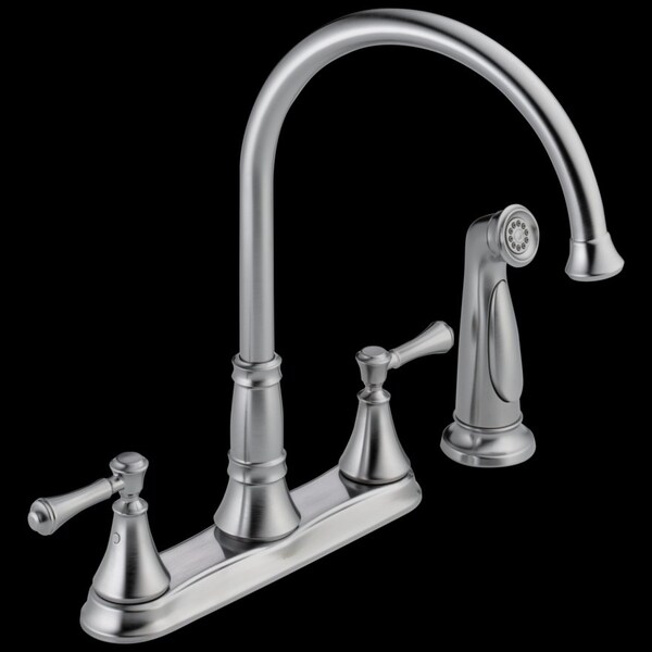 Delta Cassidy Two Handle Kitchen Faucet with Spray Arctic Stainless