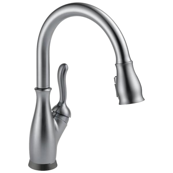 Touch it on. Touch it off. Whether you have two full hands or 10 messy fingers, Delta Touch2O Technology helps keep your faucet clean, even when your hands aren't. A simple touch anywhere on the spout or handle with your wrist or forearm activates the flow of water at the temperature where your handle is set. The Delta TempSense LED light changes color to alert you to the water's temperature and eliminate any possible surprises or discomfort. Delta MagnaTite Docking uses a powerful integrated magnet to pull your faucet spray wand precisely into place and hold it there so it stays docked when not in use. Delta ShieldSpray Technology cleans with laser-like precision while containing mess and splatter. A concentrated jet powers away stubborn messes while an innovative shield of water contains splatter and clears off the mess, so you can spend less time soaking, scrubbing and shirt swapping. Delta faucets with DIAMOND Seal Technology perform like new for life with a patented design which reduces leak points, is less hassle to install and lasts twice as long as the industry standard*. Kitchen faucets with Touch-Clean Spray Holes allow you to easily wipe away calcium and lime build-up with the touch of a finger. You can install with confidence, knowing that Delta faucets are backed by our Lifetime Limited Warranty. Electronic parts are backed by our 5-year electronic parts warranty. *Industry standard is based on ASME A112.18.1 of 500,000 cycles.