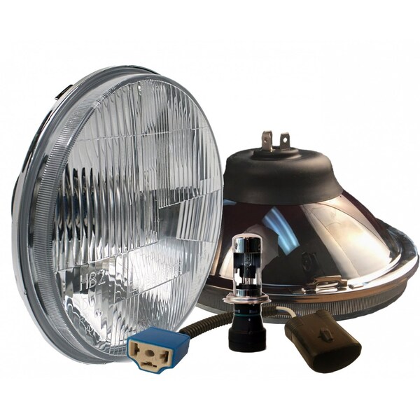 7" H.I.D. Headlight Set with Adapters for vehicles with 9007 type harness.