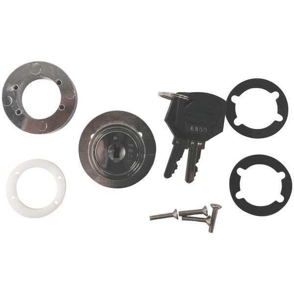 Disc Tumbler Sliding Door Lock, Round Bolt, Polished Chrome Finish, 7/8 In. Cylinder, Bolt Hole Dia. (In.) 1-3/16, Max. Latching Distance (In.) 5/8, For Door Thickness (In.) 3/8, Key Number 6200, Key Type Alike, For Use With Showcase Glass Sliding Doors, Includes (2) Keys
