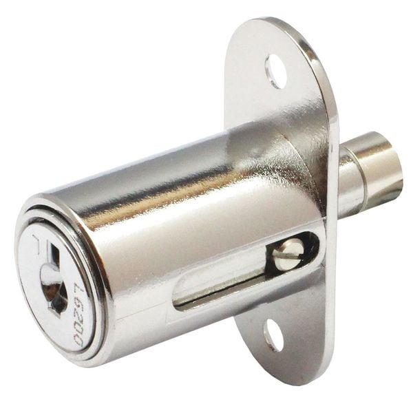 Sliding Door Lock, Round Bolt Plunger, Polished Chrome Finish, 7/8 In. Cylinder, Bolt Hole Dia. (In.) 3/8, Max. Latching Distance (In.) 5/8, For Door Thickness (In.) 1-1/4, Key Number 6600, Key Type Alike, For Use With Showcase Sliding Doors