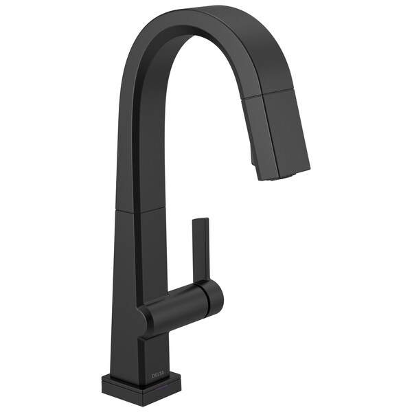 The confident slant of the Pivotal Collection makes it a striking addition to your kitchen's contemporary geometry for a look that makes a statement. Touch it on. Touch it off. Whether you have two full hands or 10 messy fingers, Delta Touch2O Technology helps keep your faucet clean, even when your hands aren't. A simple touch anywhere on the spout or handle with your wrist or forearm activates the flow of water at the temperature where your handle is set. The Delta TempSense LED light changes color to alert you to the water's temperature and eliminate any possible surprises or discomfort. Delta MagnaTite Docking uses a powerful integrated magnet to pull your faucet spray wand precisely into place and hold it there so it stays docked when not in use. Delta faucets with Diamond Seal Technology perform like new for life with a patented design which reduces leak points, is less hassle to install and lasts twice as long as the industry standard*. You can install with confidence, knowing that Delta faucets are backed by our Lifetime Limited Warranty. Electronic parts are backed by our 5-year electronic parts warranty. *Industry standard is based on ASME A112.18.1 of 500,000 cycles.