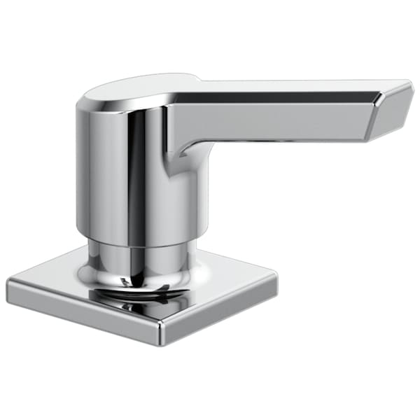 The confident slant of the Pivotal Collection makes it a striking addition to your kitchen's contemporary geometry for a look that makes a statement. Clear the clutter from around your sink with this Delta Soap Dispenser. This soap dispenser may also be used with lotion. Easily refillable from above the deck, the bottle holds 13 oz. of liquid. Pump assembly and bottle are included.