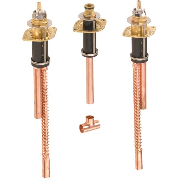 Complete your bath makeover with a luxurious Roman tub. The works with all 3-hole Roman tub trim kits, allowing you to install the rough and choose the trim later. For added convenience with installation, it allows you to tighten and adjust from above the deck.Includes the cartridgeFor use with 3-hole 2-handle roman tub trim kitsMaximum 2-1/2 in. deck thickness18 GPM at 60 psiNo additional mounting kits requiredTrim sold separately. This product contains one or more chemicals including lead known to the State of California to cause cancer and birth defects or other reproductive harm. Wash hands after installing or handling the product. https://www.p65warnings.ca.gov/