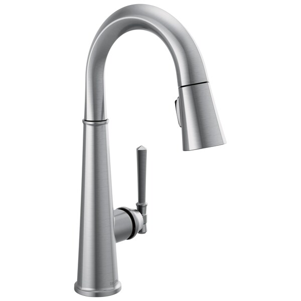 The defined ridges of the Emmeline Kitchen Collection's diamond-shaped spout cut a streamlined profile, balanced by captivating details that lend an elemental sense of old-world flair. Kitchen sink faucets with Touch-Clean Spray Holes allow you to easily wipe away calcium and lime build-up with the touch of a finger. Delta Lumicoat Finishes are guaranteed to resist water spots and mineral buildup and easily wipe clean without the need for cleaners or chemicals. The ultra-sleek surface repels liquids, resisting water spots and staying cleaner longer, so your faucet stays beautiful. Delta kitchen faucets with DIAMOND Seal Technology perform like new for life with a patented design which reduces leak points, is less hassle to install and lasts twice as long as the industry standard*. You can install with confidence, knowing that Delta kitchen faucets are backed by our Lifetime Limited Warranty.