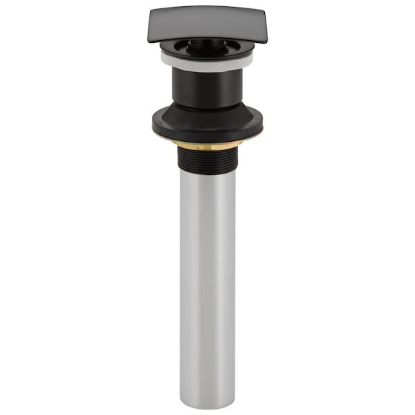 This all-metal construction push pop-up is best paired with square featured bathroom faucets. Matte Black makes a statement in your space, cultivating a sophisticated air and coordinating flawlessly with most other fixtures and accents. With bright tones, Matte Black is undeniably modern with a strong contrast, but it can complement traditional or transitional spaces just as well when paired against warm nuetrals for a rustic feel akin to cast iron. For use with sinks without overflow.