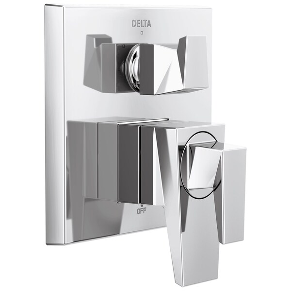 The prismatic faceting of the Trillian Bath Collection is an evolution of modern style that creates an edgy look which catches the light as well as the eye. Delta showers with Monitor pressure-balance valves are engineered to make sure you don't experience a sudden and possibly unsafe change in water temperature as a result of running water elsewhere, such as using a dishwasher, flushing a toilet or running a washing machine. By integrating separate controls on one trim with the MultiChoice Integrated Shower Diverter, we've streamlined installation and your shower style. With the MultiChoice Universal system, you have the freedom to upgrade style and functionality later. And, because there's no need to alter plumbing behind the wall, you save time, effort and money on future renovation updates. With separate volume and temperature control on this model, simply set the water at your preferred temperature and turn the shower on or off with the volume control handle without interrupting your set temperature. You can install with confidence, knowing that Delta showers are backed by our Lifetime Limited Warranty.