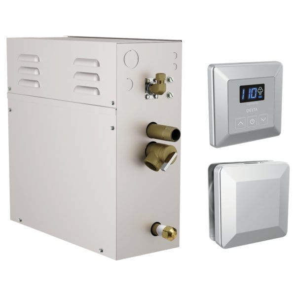 Simple to order and simple to use, the SimpleSteam Kit is simple for a reason: so you can enjoy the benefits of at-home steam whenever you want it. Steam can be more than a relaxing escape. Discover how the Delta Steam Systems can improve your overall wellbeing. Plus, conserve water and energy without compromising your experience-an average 20-minute steam shower uses less than one gallon of water.