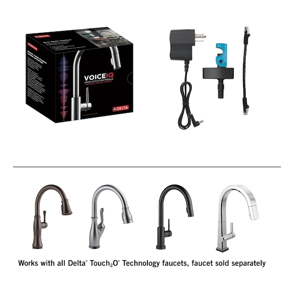 Available only for Delta Touch2O Faucets, install this Delta VoiceIQ Module to convert your existing touch-activated faucet into one that responds to voice commands. Delta VoiceIQ Technology dispenses exactly the amount of water you need with hands-free voice activation. Command your faucet to turn on and off, warm the water, dispense a metered amount or fill custom containers like your coffee pot.