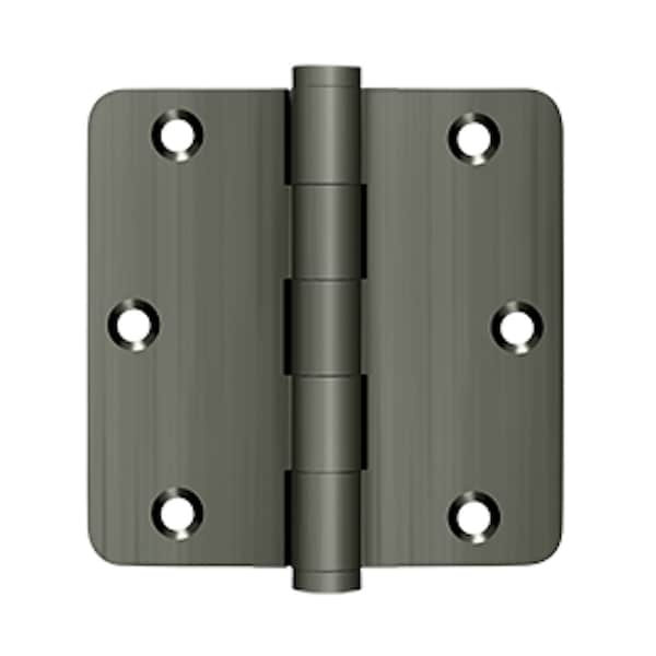 Deltana is the architectural hardware manufacturer with a proven record for exceptional service and quality. Deltana inventories the largest selection of architectural and door hardware in over nine fine finishes made from solid brass, zinc, aluminum, steel and stainless steel.. 3-1/2 x 3-1/2 x 1/4 Radius Hinge; Antique Nickel Finish
