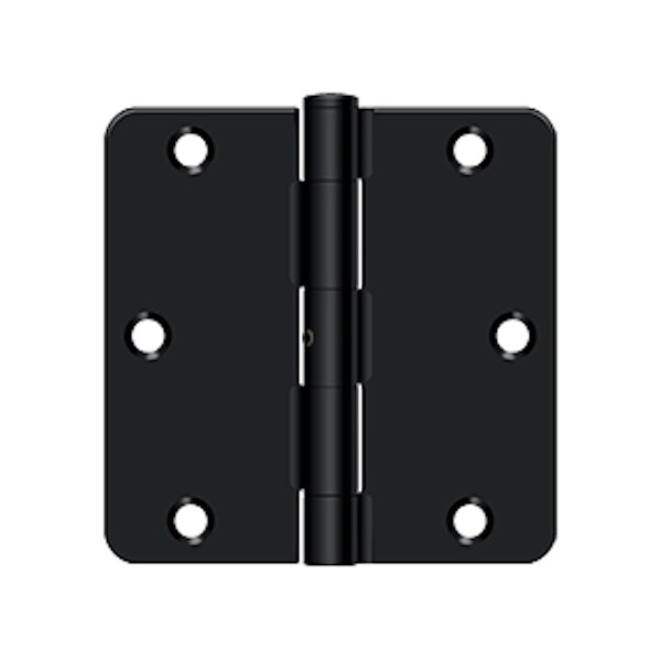Deltana is the architectural hardware manufacturer with a proven record for exceptional service and quality. Deltana inventories the largest selection of architectural and door hardware in over nine fine finishes made from solid brass, zinc, aluminum, steel and stainless steel.. 3-1/2 x 3-1/2 x 1/4 Radius Hinge Non Removable Pin; Paint Black Finish