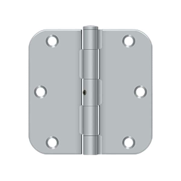 Deltana is the architectural hardware manufacturer with a proven record for exceptional service and quality. Deltana inventories the largest selection of architectural and door hardware in over nine fine finishes made from solid brass, zinc, aluminum, steel and stainless steel.. 3-1/2 x 3-1/2 x 5/8 Radius Hinge; Heavy Duty; Satin Chrome Finish