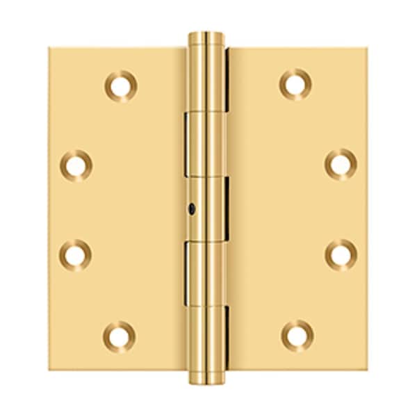 Deltana is the architectural hardware manufacturer with a proven record for exceptional service and quality. Deltana inventories the largest selection of architectural and door hardware in over nine fine finishes made from solid brass, zinc, aluminum, steel and stainless steel.. 4-1/2 x 4-1/2 Square Hinge; Ball Bearings; Non Removable Pin Lifetime Brass Finish
