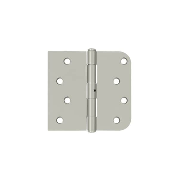 Deltana is the architectural hardware manufacturer with a proven record for exceptional service and quality. Deltana inventories the largest selection of architectural and door hardware in over nine fine finishes made from solid brass, zinc, aluminum, steel and stainless steel.. 4 x 4-1/4 x 5/8 Radius x Square Hinge; Non Removable Pin; Satin Nickel Finish
