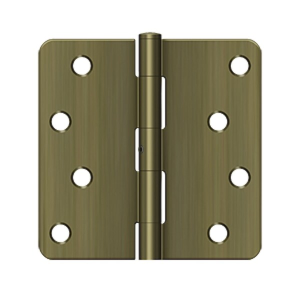 Deltana is the architectural hardware manufacturer with a proven record for exceptional service and quality. Deltana inventories the largest selection of architectural and door hardware in over nine fine finishes made from solid brass, zinc, aluminum, steel and stainless steel.. 4 x 4 x 1/4 Radius Hinge; Heavy Duty; Antique Brass Finish