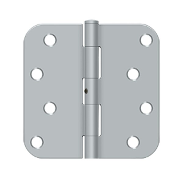 Deltana is the architectural hardware manufacturer with a proven record for exceptional service and quality. Deltana inventories the largest selection of architectural and door hardware in over nine fine finishes made from solid brass, zinc, aluminum, steel and stainless steel.. 4 x 4 x 5/8 Radius Hinge; Non Removable Pin Satin Chrome Finish