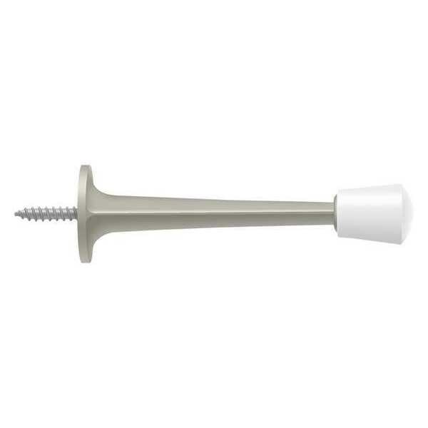 Bumper, Mounting Type Door Mount, Finish Satin Nickel, Color Silver, Base Dia. 7/8 in, Projection 3 in, Length 3 5/8 in, Height 7/8 in, Width 7/8 in, Door Opening Adjustment 85 Degrees to 125 Degrees , Mounting Style Surface, Material Zinc, Tip Material Rubber, Hardware Included