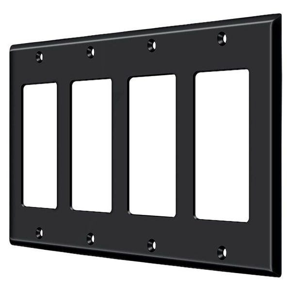 Quadruple Rocker Switch Plate, Number of Gangs: 4 Solid Brass, Paint Black Finish
