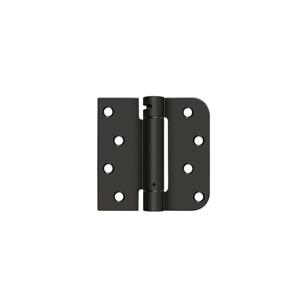 Deltana is the architectural hardware manufacturer with a proven record for exceptional service and quality. Deltana inventories the largest selection of architectural and door hardware in over nine fine finishes made from solid brass, zinc, aluminum, steel and stainless steel.. Right Hand 4 x 4 5/8 Radius by Square Spring Hinge; Oil Rubbed Bronze Finish