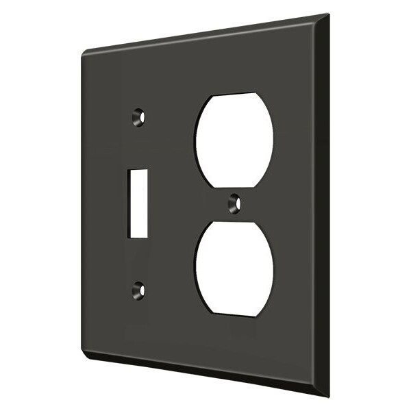 Single Switch/Double Outlet Switch Plate, Number of Gangs: 2 Solid Brass, Oil Rubbed Bronze Finish