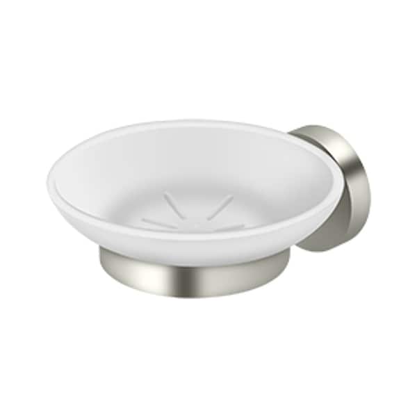 Deltana is the architectural hardware manufacturer with a proven record for exceptional service and quality. Deltana inventories the largest selection of architectural and door hardware in over nine fine finishes made from solid brass, zinc, aluminum, steel and stainless steel.. Soap Holder with Glass BBS Series; Bright Nickel Finish