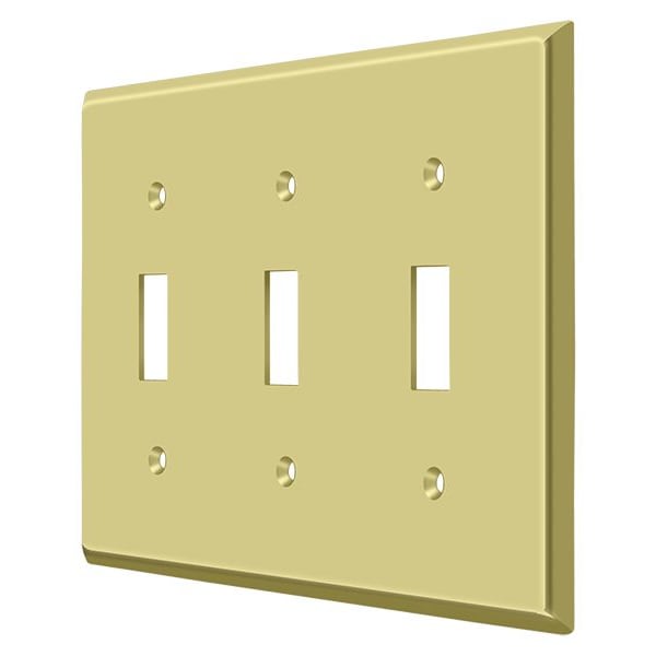 Triple Standard Switch Plate, Number of Gangs: 3 Solid Brass, Polished Brass Finish