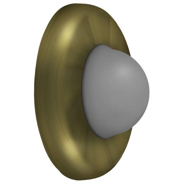 Wall Mount Convex Flush Bumper, 2-1/2" Diameter Antique Brass