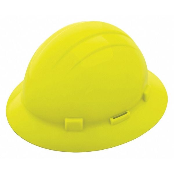Hard Hat, ANSI Classification Type 1, Class E, Head Protection Style Full Brim, Head Protection Suspension Type Ratchet (4-Point), Head Protection Color Yellow, Head Protection Graphics No Graphics, Fits Hat Size 6-1/2 to 8, Head Protection Material Polyethylene, Head Protection Venting No, High-Visibility High-Visibility, Series Americana
