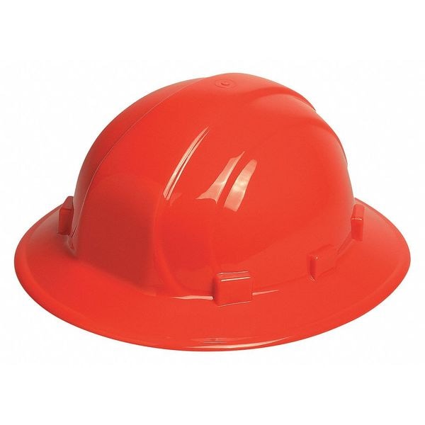 Hard Hat, ANSI Classification Type 1, Class E, Head Protection Style Full Brim, Head Protection Suspension Type Pinlock (6-Point), Head Protection Color Orange, Head Protection Graphics No Graphics, Fits Hat Size 6-1/2 to 8, Head Protection Material Polyethylene, Head Protection Venting No, High-Visibility High-Visibility, Standards ANSI Z89.1, Series Omega II(R)