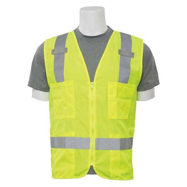 Safety Vest,Zipper,Hi-Viz,Lime,M