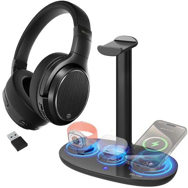 D101 Wireless Computer Headset and Stand Charging Station Bluetooth Stereo Headphoones