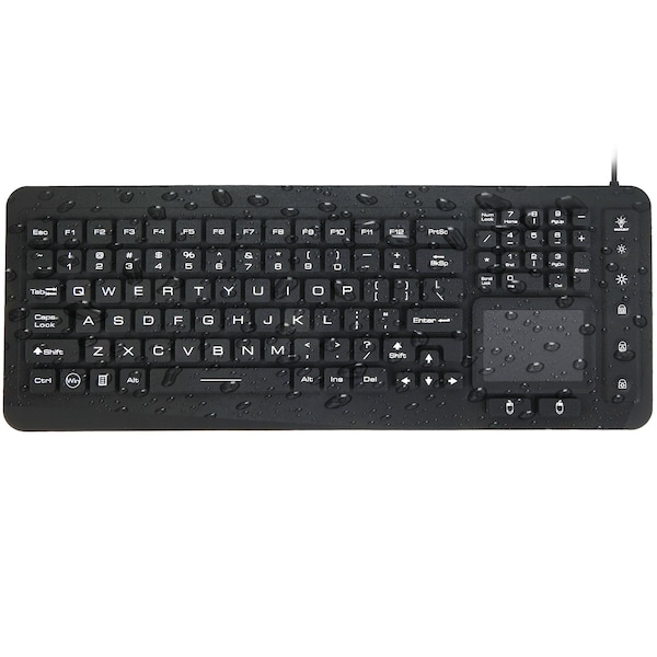 Medical Grade Airtight Waterproof USB Backlit Computer Keyboard & Touchpad, Black