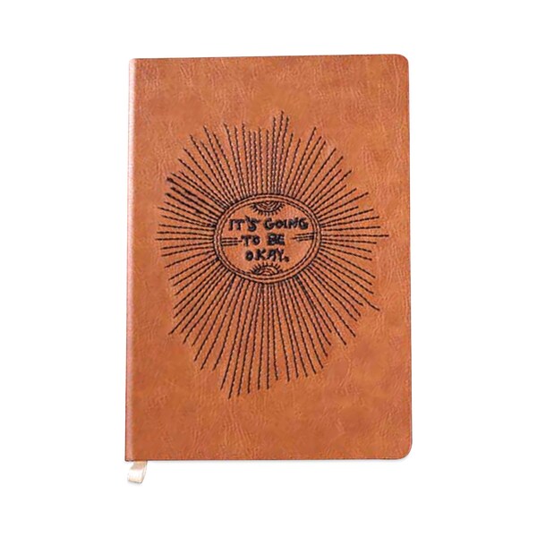 Black-Thread Embroidery—"It's Going to Be Okay" design is inspired by Americana folk art. Journal features a gold satin-ribbon bookmark.