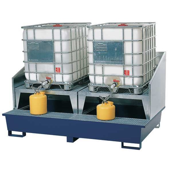 IBC Dispensing Station, Built In Sump Yes, Color Blue, Components Included (2) Stands, Splashguard, Drain Included No, Fluorinated No, For Container Type IBC, For Use With Standard Fork Yes, Forklift Pockets 4-Way, Grate Material Steel, Includes Container Stand for Filling Yes, Includes Splash Guard Yes, Indoor/Outdoor Use Indoor, Load Capacity, lb. 10,000 lb, Manufacturer Warranty 1 yr, Material Steel, Number of IBC Totes 2, Pallet Dimensions 120 in L x 73 in W x 61 in H, Pallet Height 61 in