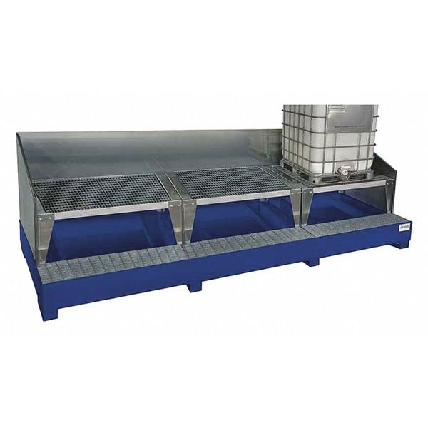 IBC Dispensing Station, Color Blue, Drain Included No, For Container Type IBC, Forklift Pockets Yes, Indoor/Outdoor Use Indoor, Load Capacity, lb. 15,000 lb, Manufacturer Warranty 1 yr, Material Steel, Number of IBC Totes 3, Pallet Dimensions 180 in L x 73 in W x 61 in H, Pallet Height 61 in, Pallet Length 15 ft, Pallet Width 6 1/16 ft, Product Type IBC Dispensing Station, Product Weight 2,015 lb, Recycled Content ( Percent) No Recycled Content, Spill Capacity, gal. 385 gal