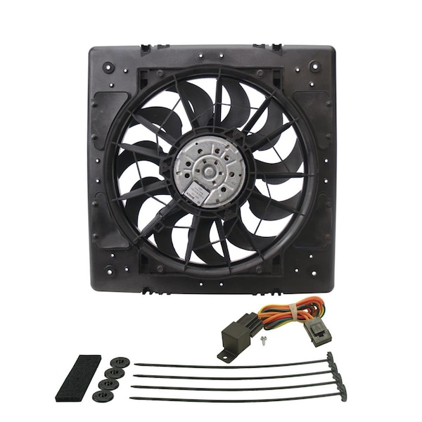 Derale provides electric fans belt driven fans fluid coolers and other promotional materials. Our products are of high quality that suits even the most demanding users. Another popular universal shrouded Single H.O. RAD fan this puller fan features an injection molded shroud with pressure relief vents 265 watt Bosch motor spinning 11 quiet patented skewed blades qualifies it for primary cooling use. Kit includes 4 plastic through-radiator core rods and clips and 4 foam mounting pads. Features -Designed for primary cooling -Injection molded shroud with stator flow directors -High output 265 watt motor -Ultra-quiet patented skewed blade design -Puller engine side applications only -Fan kit includes complete mounting kit Specifications - Size: 13in