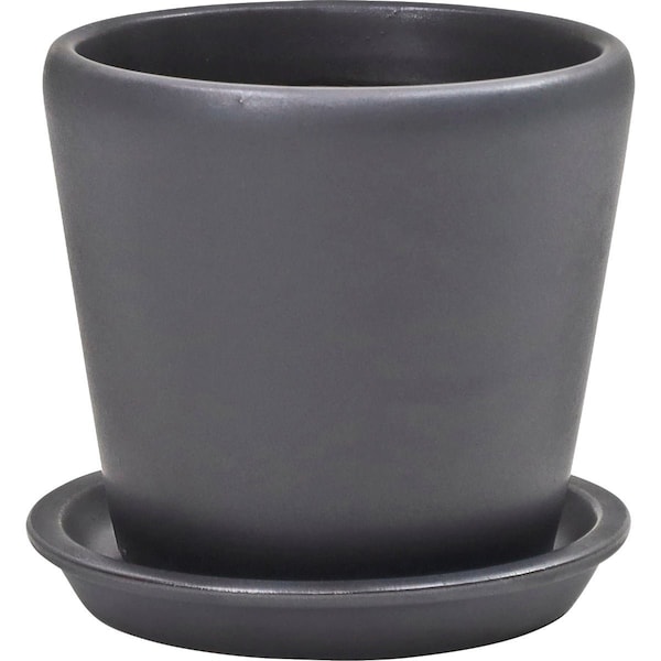 Levisa 6'' Dia. Matte Black Ceramic Planter