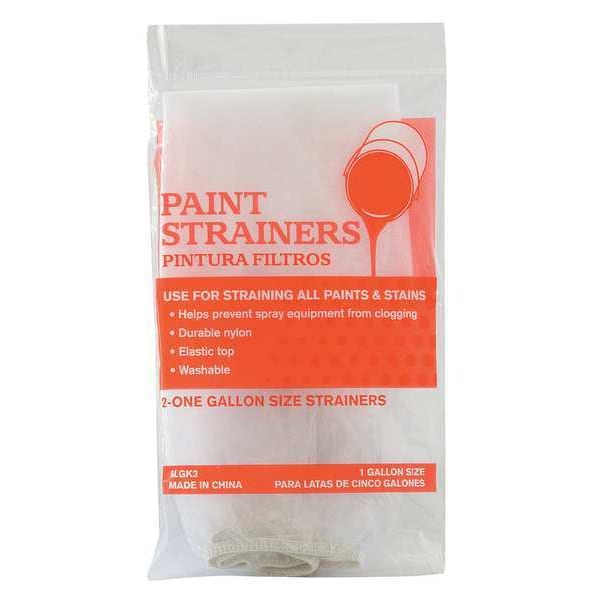 Reusable Paint Strainer, Product Type Reusable Paint Strainer, Length 12 in, Width 12 1/2 in, Height 12 1/2 in, Material Nylon, Color White, Mesh Size 400 micron, For Use With 1 gal Paint Cans, Paints, Stains, Reusable Yes, Compatible Bucket Size 1 gal, Package Quantity 2
