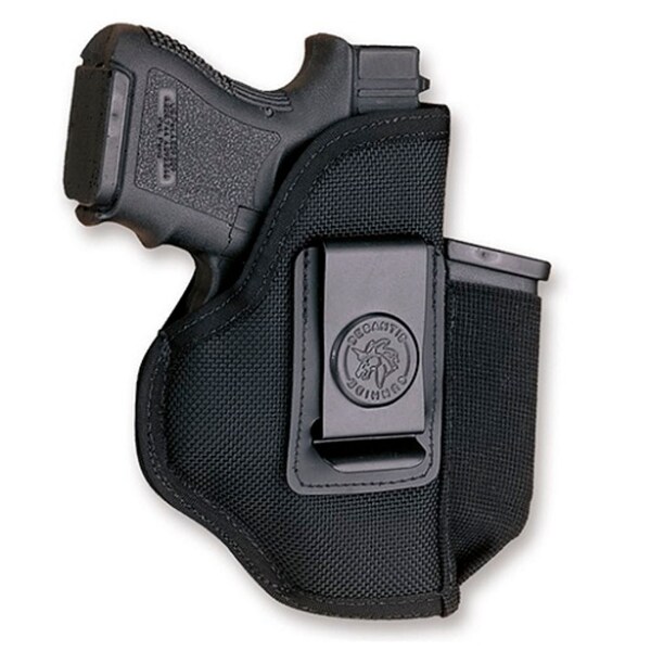 The Pro Stealth holster is made of premium padded ballistic nylon. The 1-3/4" sturdy power coated black spring clip keeps this beauty securely anchored to your belt. A spare magazine pouch is standard for the auto loader models and they are ambidextrous. The clip may be removed and inserted on opposite side for left hand carry. Made in USA.