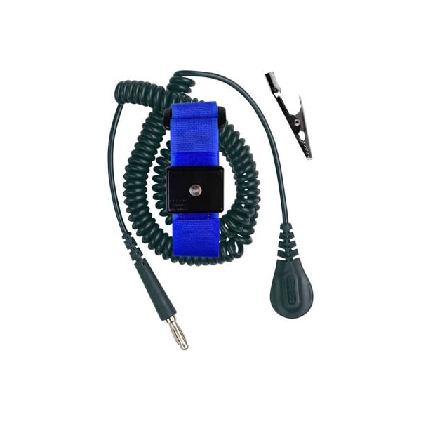 Desco Adjustable Coil Cord W/ Hook & Loop Wrist Strap, 6' Cord, Black