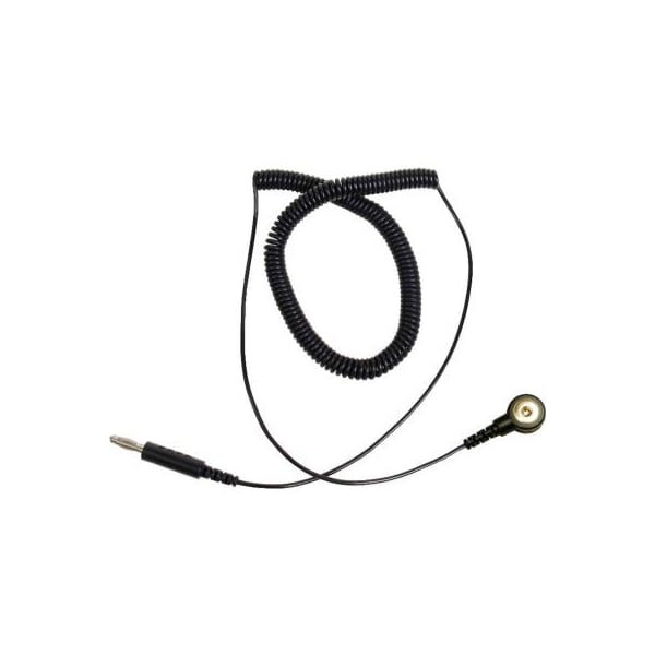 Desco trustat coil cord 10 ft 04538 thermoplastic elastomer - black features: 10 foot coil cord 4mm snap standard banana plug .166in (4.2mm) 1 meg ohm resistor ul listed