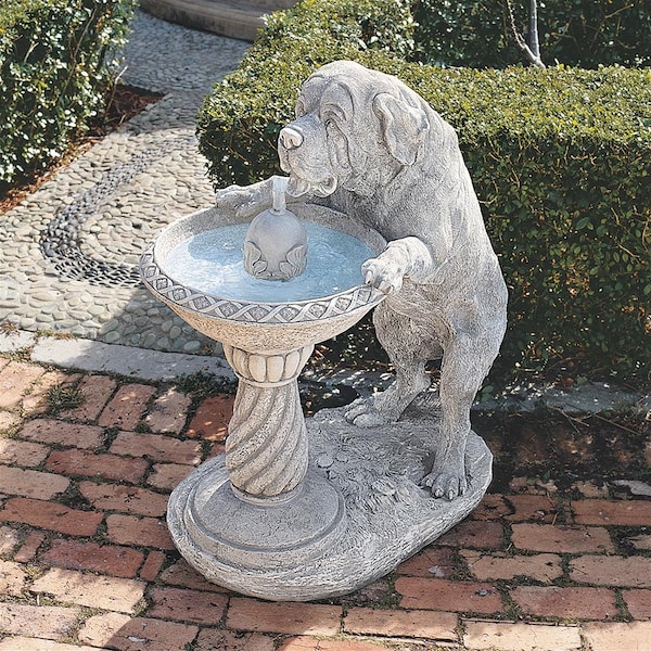 Our canine friend isn't the only one who will be attracted to the pleasant water melody of music bubbling from the center orb and into the generous basin of this more-than-yard-tall, European-style fountain! Our lovable, over-sized Saint Bernard is the first in line at this refreshingly distinctive addition to home or garden. Cast in quality designer resin with a faux stone finish, this splendidly sculpted fountain is an investment in garden art.UL-listed, indoor/outdoor pump. Arrives in 2 pieces. 17"W x32"D x371⁄2" H. 57 lbs.