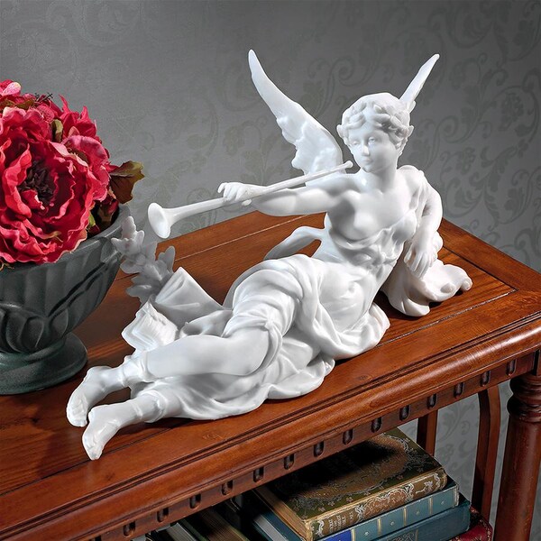 Resculpted from a French mantelpiece antique, our replica guardian angel statue stretches almost two-feet long as she trumpets her good news. Exquisitely sculpted with gallery-quality detail from her feathered angel wings to her masterfully draped gown, our divine messenger sculpture seems to float above the Earth. Cast in bonded marble resin that will bring instant refinement to any home, our 19th century replica angel figurines are found exclusively at Design Toscano. 191⁄2"Wx61⁄2"Dx9"H. 6 lbs.