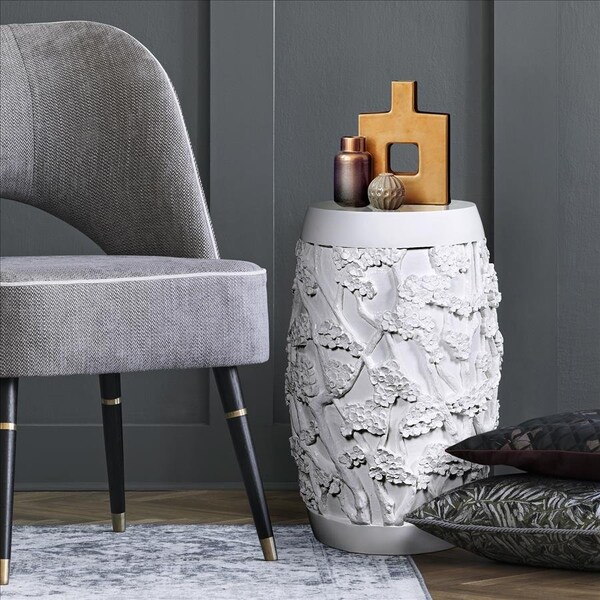 Sakura Cherry Blossom Asian Sculptural Pedestal Table: Gloss White Finish (Discontinued)