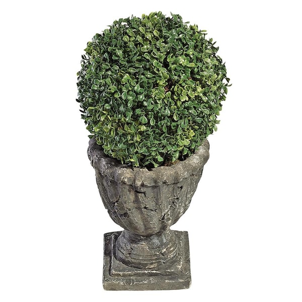 Dense, faux boxwood foliage fools the eye in this hand-crafted, everlasting topiary that never need to be watered or pruned! Our Toscano exclusive Boxwood Ball topiary boasst lush foliage and is set in exquisite, quality designer resin basin with an aged stone finish for home or garden use. Medium: 10"dia.x191⁄2"H. 7 lbs.